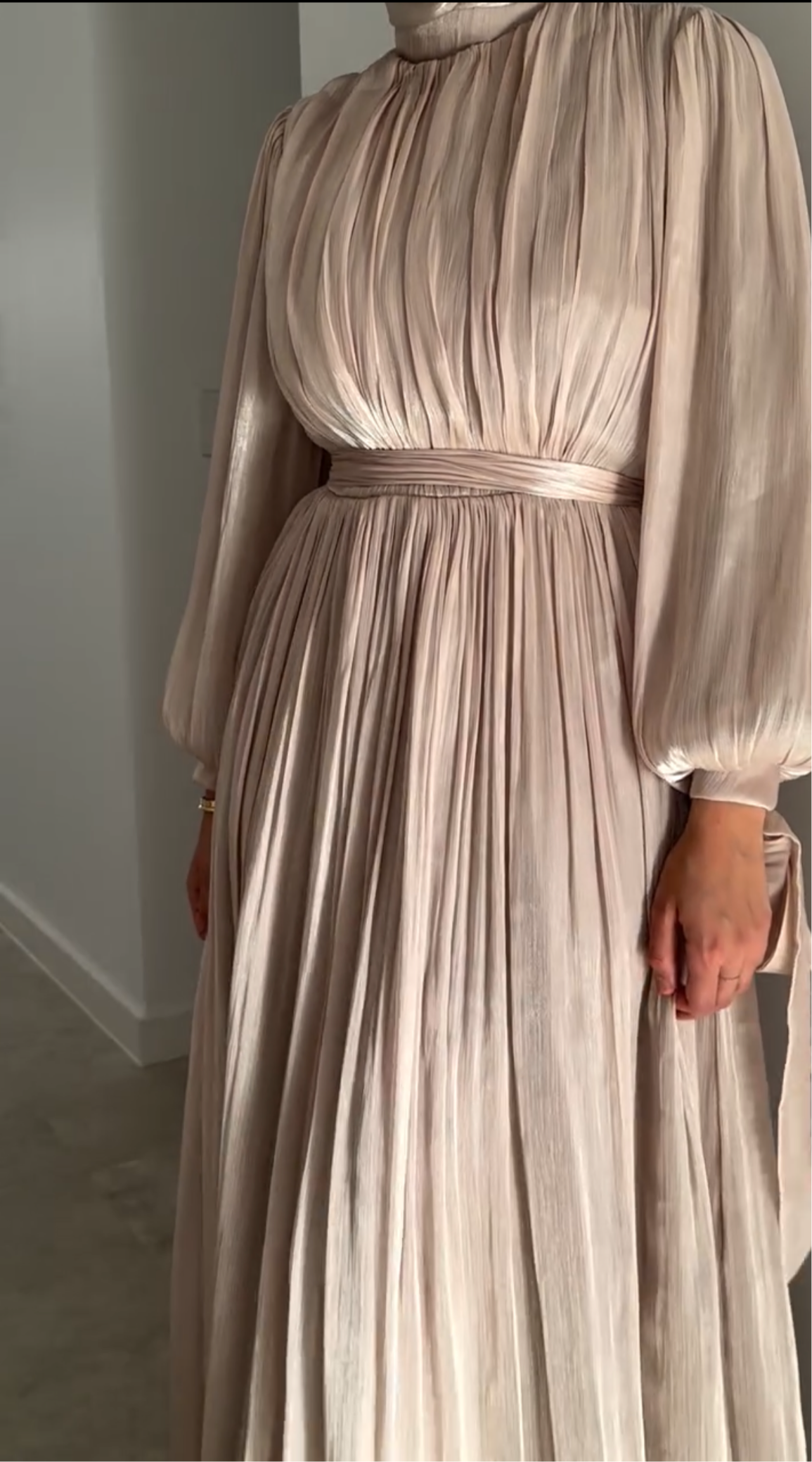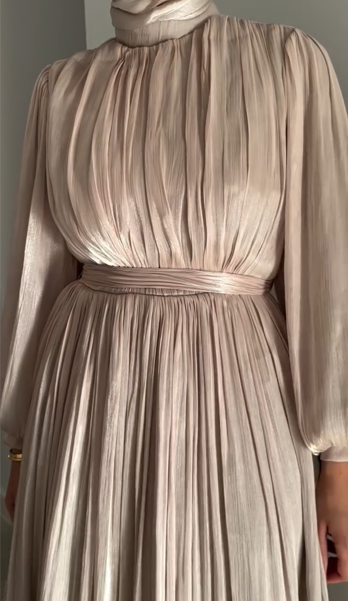 Ce modèle en mousseline plissé est une belle option pour ajouter une touche élégante et raffinée à votre silhouette. La texture fluide et légèrement transparente de la mousseline, combinée aux plis structurés, crée un jeu de volume et de mouvement qui flatte la forme du corps.
