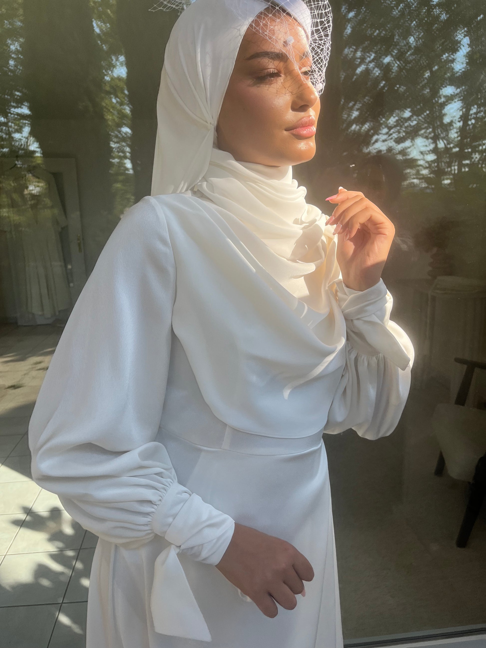 La robe de mariée AMEENA incarne une élégance intemporelle avec sa sobriété raffinée et ses détails délicatement travaillés.